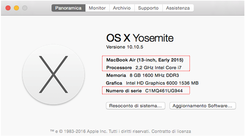 Il numero di serie del Mac è riportato anche: